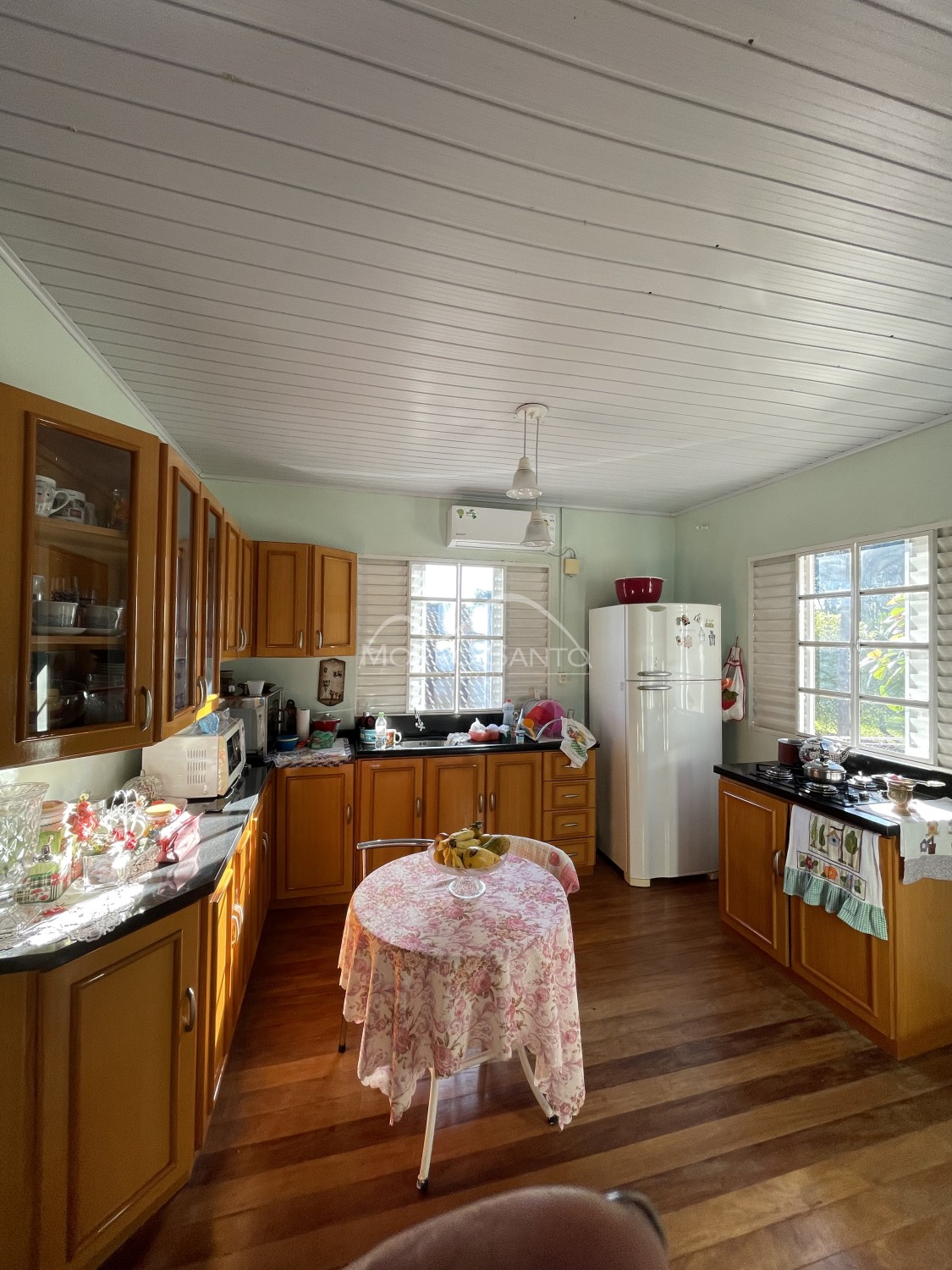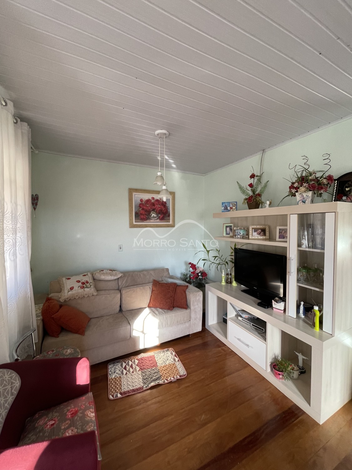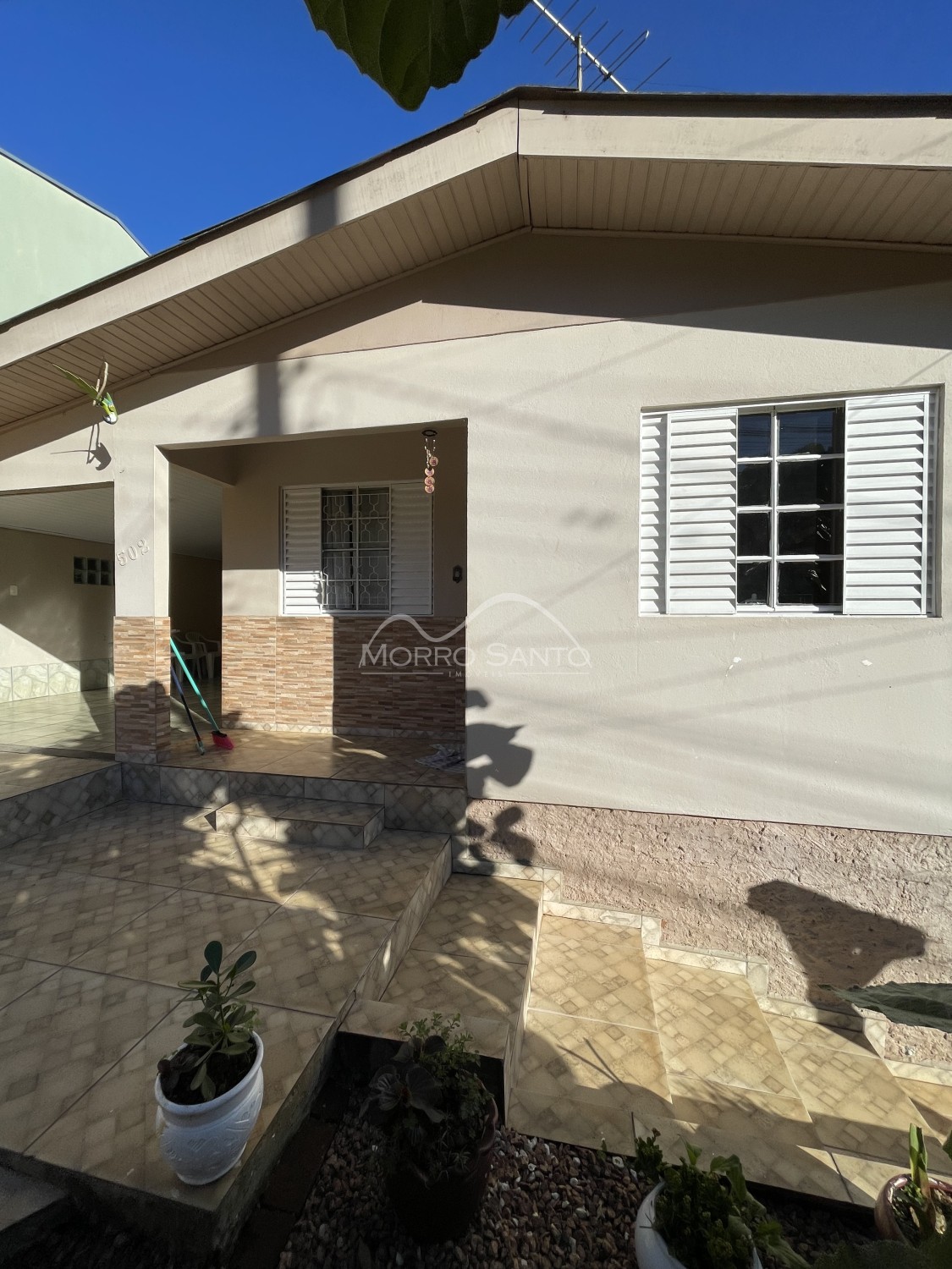 Descrição › Casa 2 dormitórios, ótima localização, local tranquilo, sol da manhã, cercada, pátio fundos com horta e pomar, churrasqueira.