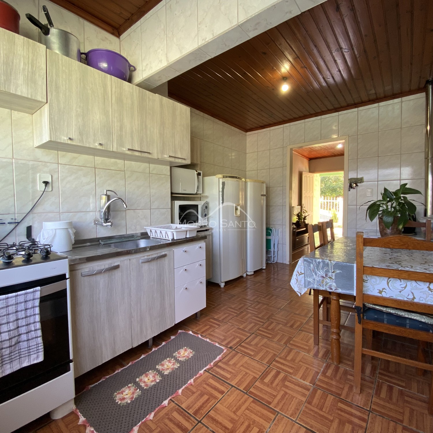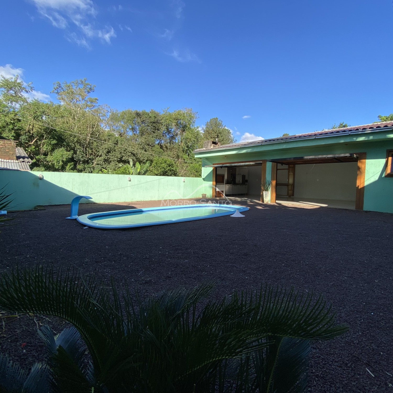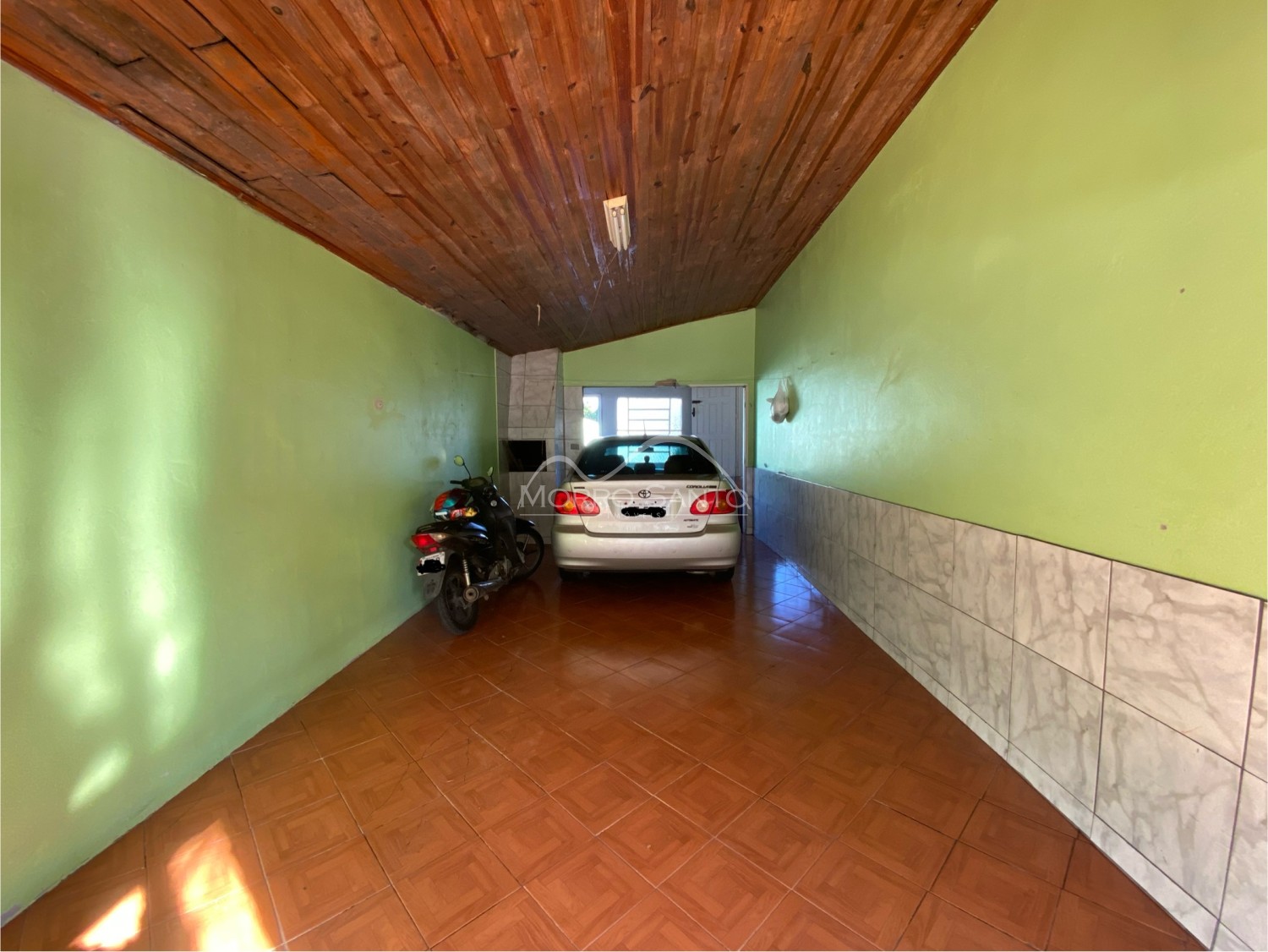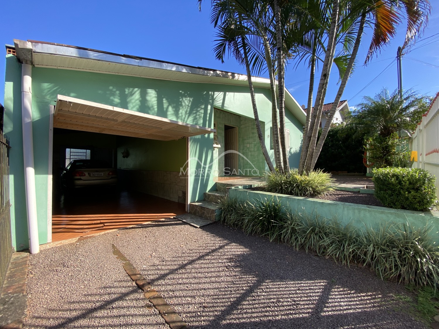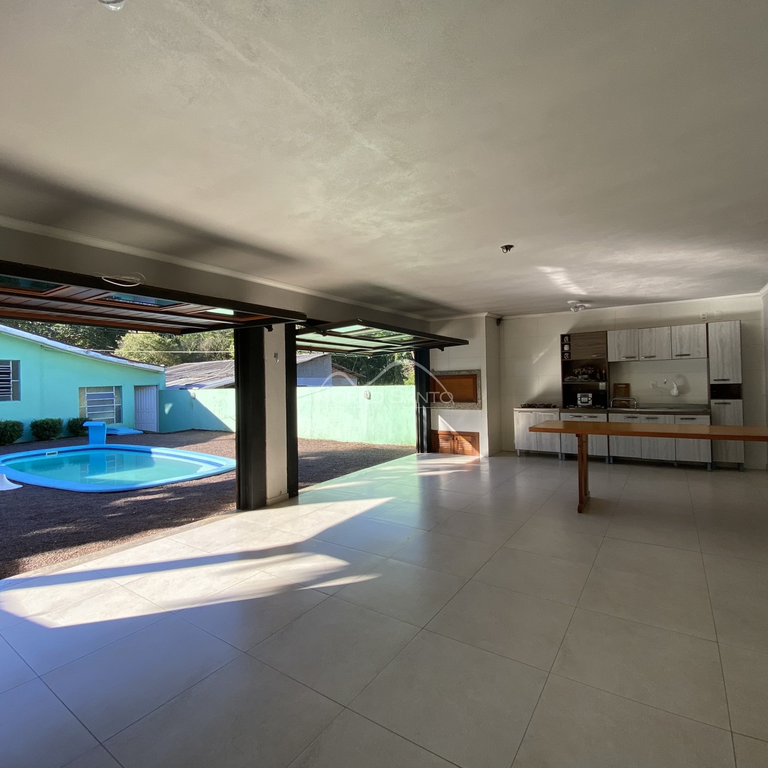 Descrição › Casa com 104m² distribuída em 3 dormitórios, sala de estar, cozinha, garagem com churrasqueira e banheiro. Quiosque com 60,36m², com espaço gourmet, banheiro e lavanderia. Piscina e amplo pátrio. Ótima localização com fácil acesso ao 386.