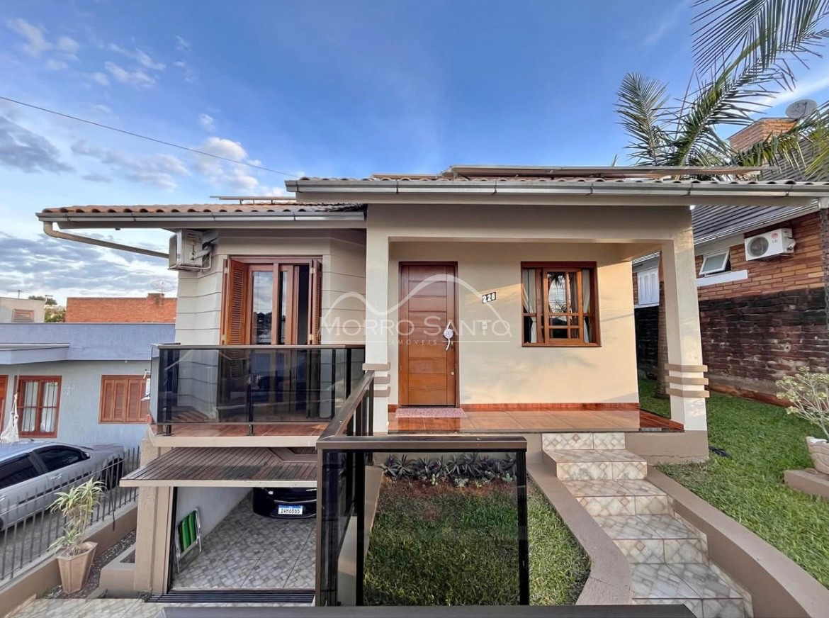 Descrição › Excelente casa à venda no bairro Centenário, em Lajeado/RS. Com 3 dormitórios, sendo 1 suíte, 2 banheiros, garagem para 2 carros, área de serviço separada, churrasqueira, pátio, energia solar e muito mais. Imóvel pronto para morar. Possui esquadrias em madeira, portão eletrônico e split espera. Uma ótima oportunidade para quem busca conforto e praticidade. Agende sua visita e venha conhecer!